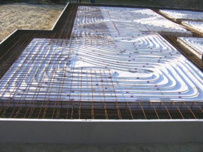 Verlegen der Kalt- und Warmwasserleitungen in PE-RT-Rohr sowie der Heizschlangen (je Raum ein separater Kreislauf), auslegen der Bewehrung lt. Plan des Statikers